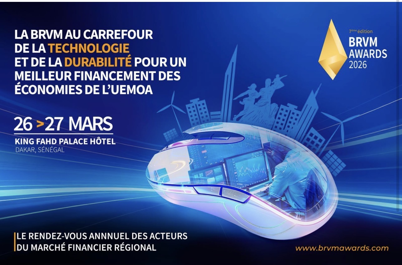 La Bourse Régionale des Valeurs Mobilières (BRVM) annonce la tenue de la 7ᵉ édition des BRVM Awards 2026 à Dakar, pour la deuxième fois de son histoire. L’événement réunira les acteurs du Marché Financier Régional de l’UEMOA autour du thème : « La BRVM au carrefour de la technologie et de la durabilité pour un meilleur financement des économies de l’UEMOA ».