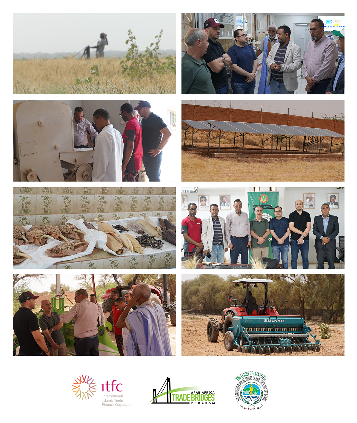 Le Programme des Ponts Commerciaux Arabo-Africains (AATB) a lancé une initiative stratégique en Mauritanie visant à développer les capacités nationales en matière de reproduction des semences de blé, à améliorer la productivité agricole et à renforcer la chaîne de valeur du blé. Mis en œuvre en partenariat avec le Centre Arabe pour l’Étude des Zones Arides et des Terres Sèches (ACSAD) et la Société Internationale Islamique de Financement du Commerce (ITFC) (www.ITFC-idb.org), ce projet à fort impact souligne l’engagement du programme à promouvoir la sécurité alimentaire et le développement durable dans les pays membres arabes et africains.