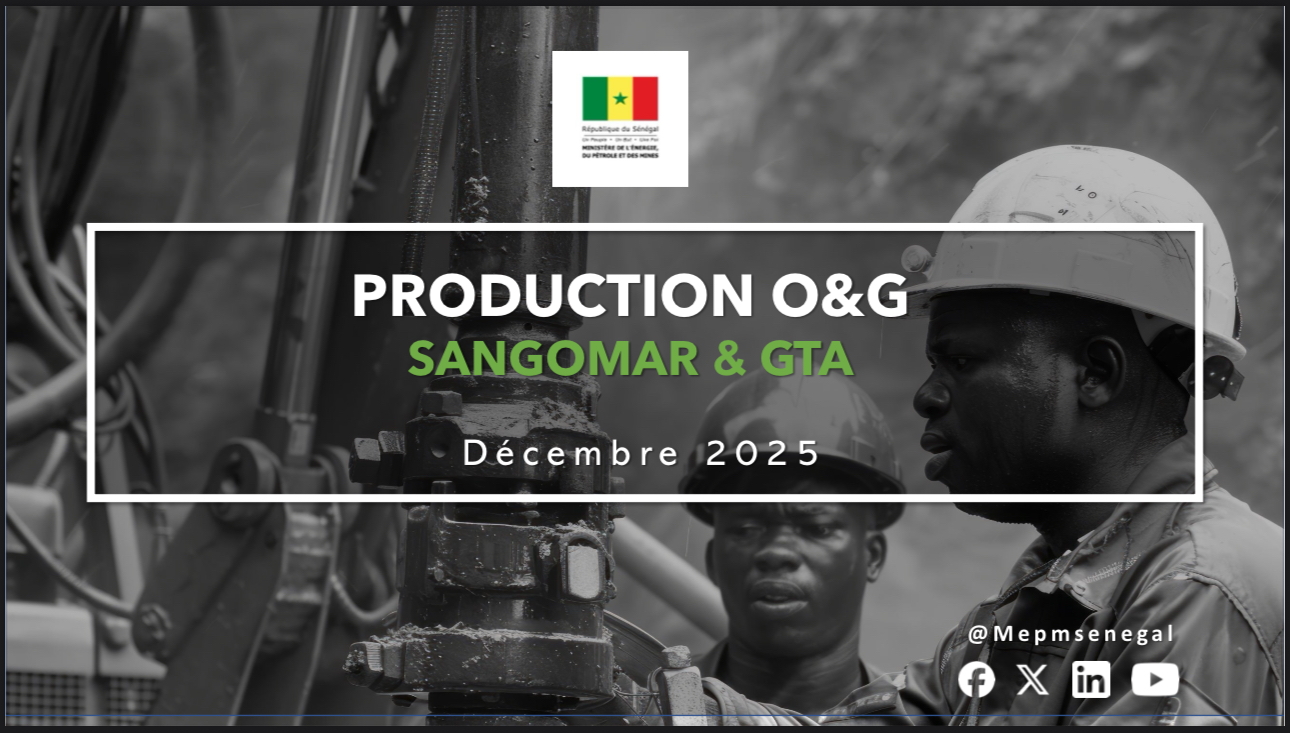 La production pétro-gazière sénégalaise a poursuivi sa trajectoire ascendante en décembre 2025, portée par les performances des projets Sangomar et Grand Tortue Ahmeyim (GTA). Selon les données publiées par le ministère de l’Énergie, du Pétrole et des Mines, « trois cargaisons (SAN052, SAN053 et SAN054) ont été chargées au cours du mois de décembre 2025 », représentant un volume total de « 2,94 millions de barils ».
